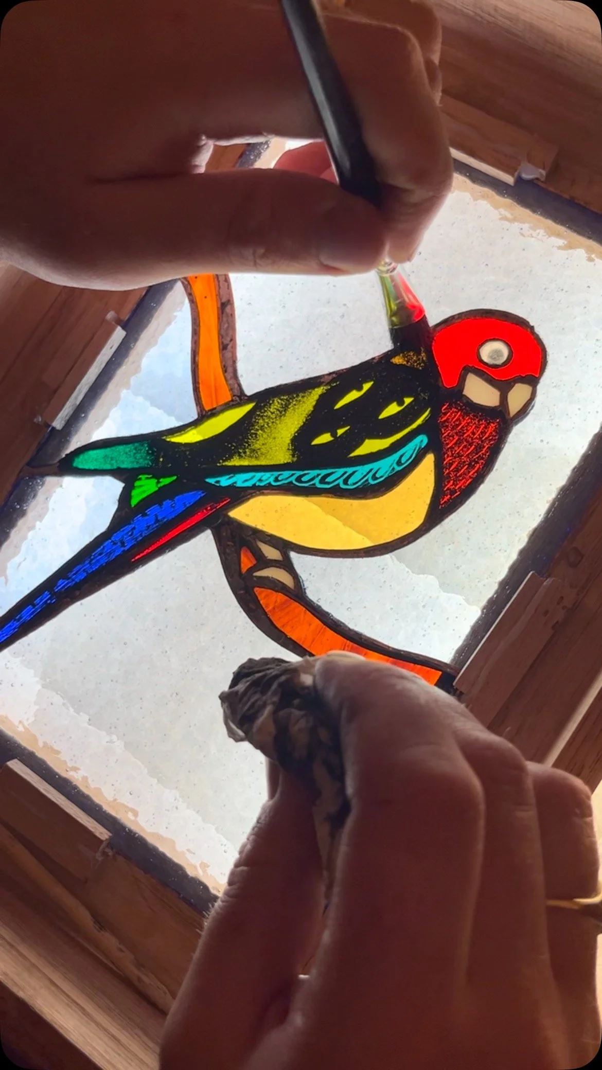 Grant Collins, an up-and-coming glass artist, established Northcote based Golden Hour Glass studio in 2021. Through Golden Hour Glass, he expresses his deep passion for the interplay between glass forms, light, and structure. His diverse portfolio encompasses lightboxes, lamps, lead-lights, and copper foiling creations. Grant draws inspiration from the rich biodiversity of Australian birds, aquatic species, and native flora and fauna.